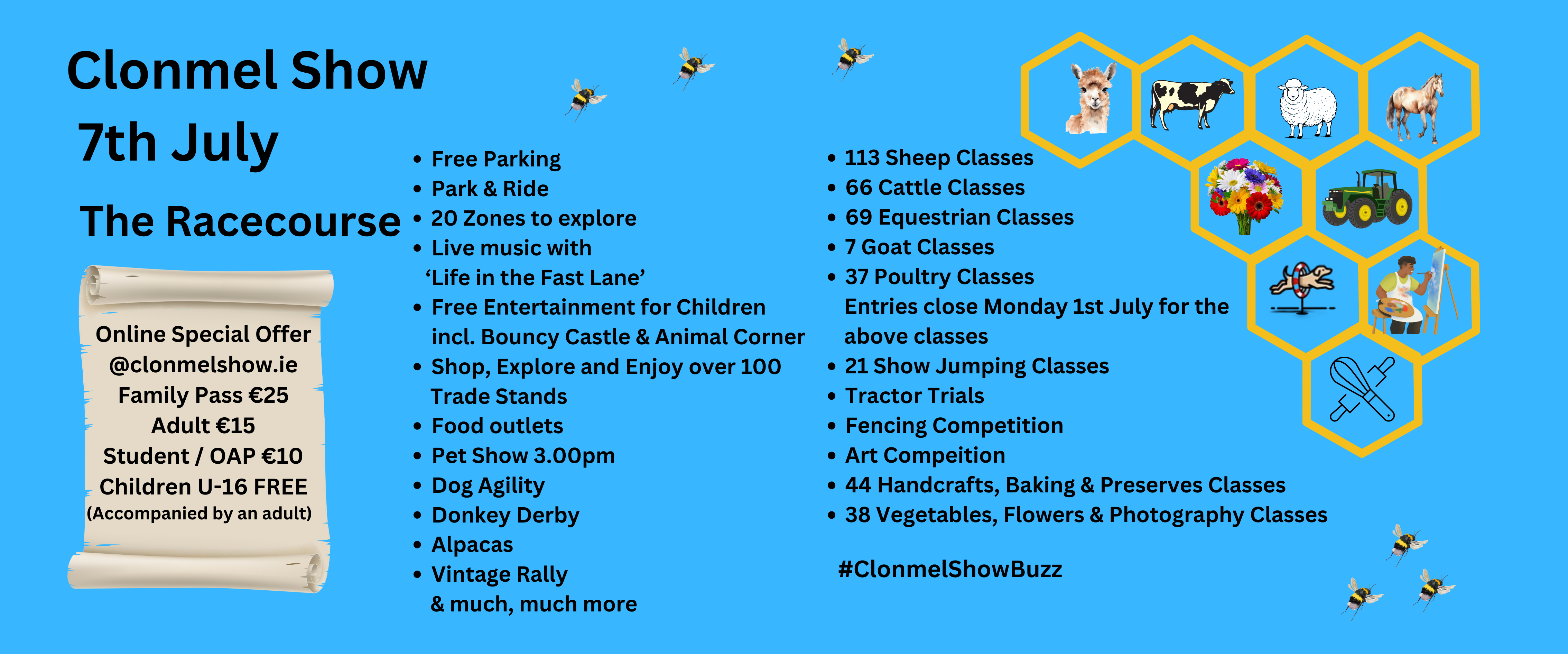 Queries re; Equestrian Programme to Show Secretary; 087-6530156 or email; info@clonmelshow.ie