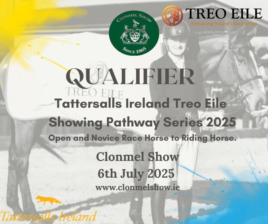 Great News! We are gratified to be part of the Tattersalls Irl. /Treo Eile Qualifiers for 2025 with 2 classes: Open RtoR & Novice RtoR. To keep up to date with all the news please check out www.clonmelshow.ie
